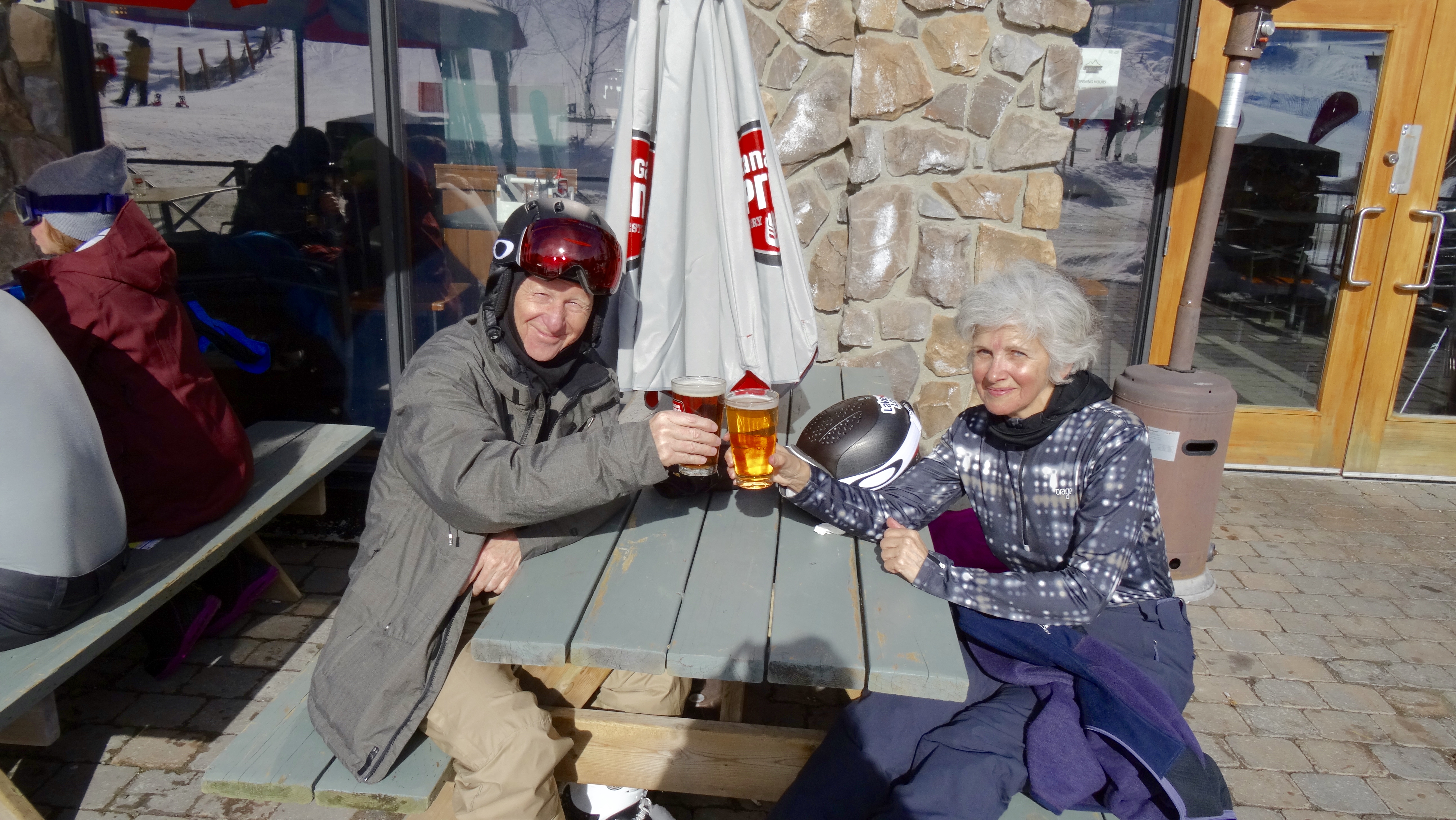 Pour terminer cette fabuleuse journée, il n’y rien de mieux  qu’une  bonne bière au chalet des skieurs sous une température printanière et de se féliciter de nos exploits.