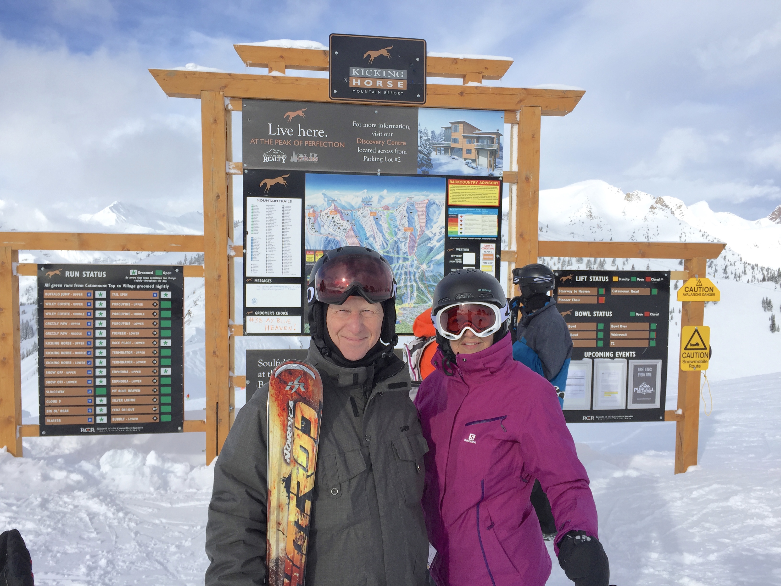 Même si nous avons nos passes de saison de ski à « Sunshine Village », nous explorerons d’autres stations mythiques des Rocheuses. Puisque cette chaîne de montagnes sépare la province de l’Alberta et de la Colombie-britannique, nous irons du côté ouest des Rocheuses et vivrons le ski de dénivelé et de poudreuse. Voici donc Kicking Horse et Revelstoke, CB.