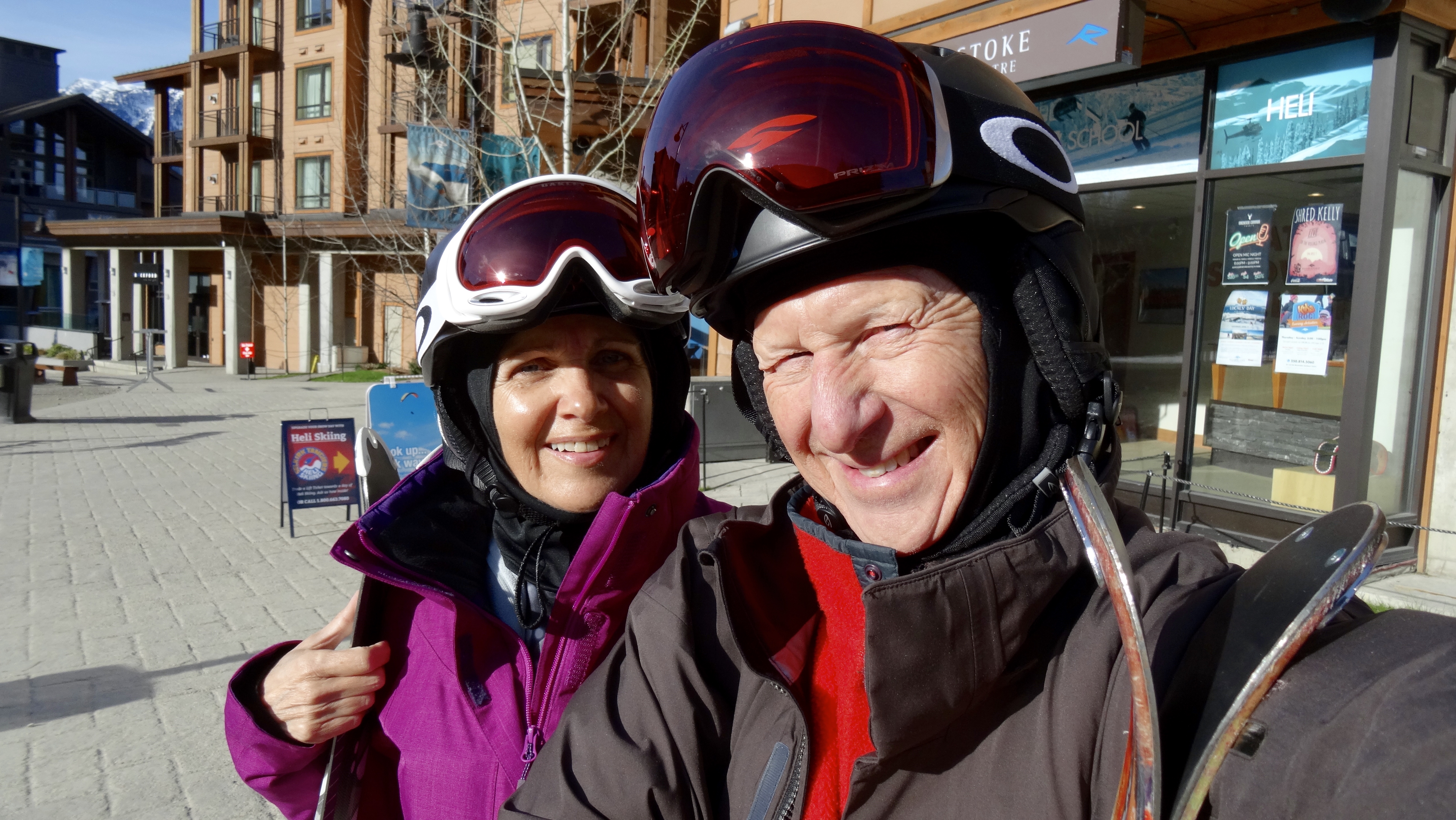 De la mi-montagne aux sommets toutes les pistes sont praticables. Alors nous tentons le tout pour le tout. Avec nos skis, nous profitons de la télé-cabine ultra rapide sans aucune file d’attente … pour se rendre au sommet. Émerveillement assuré par les points de vue qui s’ouvrent sur la Columbia Valley.  Nos premières descentes matinales, disons qu’elles sont plutôt difficiles avec les pistes durcies (comme du ciment) par la froideur de la nuit. Cependant, avec le dénivelé important, nous pouvons apprécier davantage du mordant dans la neige ramollie en moyenne altitude.
