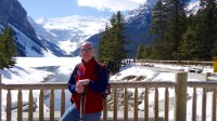 Station à l’Ouest des Rocheuses, 300km de Canmore, nous constatons à l’arrivée que la neige se fait de plus en plus rare dû à la température élevée (15 degrés C). Le printemps s’installe aussi rapidement que l’été dans cette région! Nous sommes sur le choc lorsqu’on aperçoit le bas de la montagne complètement dénudée de sa neige!! Nous comprenons que la saison est trop avancée pour bénéficier au maximum de la montagne de haut en bas.