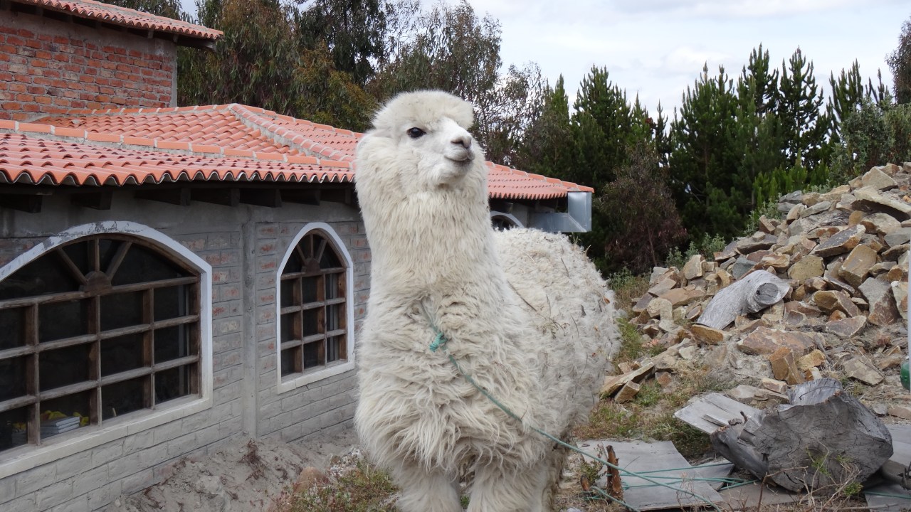 Nous sommes accueillis par un Alpaga is Welcoming us